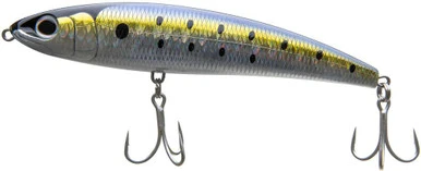 Designed to produce explosive surface strikes from the hardest hitting saltwater game fish, the Shimano Current Sniper Splash Walk combines an enticing walk-the-dog action with top quality rugged construction. These heavy duty topwater lures feature a side-to-side darting action that’s easy to produce with twitches of the rod tip. This fleeing baitfish action coupled with its low-pitch internal knocker is the perfect combination of visual and audible stimulation to drive predators absolutely mad. The Current Sniper Splash Walk is uniquely engineered to have a heavily weighted tail section, allowing the lure to sit vertically in the water on the pause. This innovative design increases hookup ratios and lessens the chance of a large fish missing the bait and knocking the plug out of the water during aggressive strikes. The Current Sniper Splash Walk also incorporates Shimano’s through-wire construction for added durability during tough fights with big fish and a Kyorin finish to give the lure a lifelike appearance.