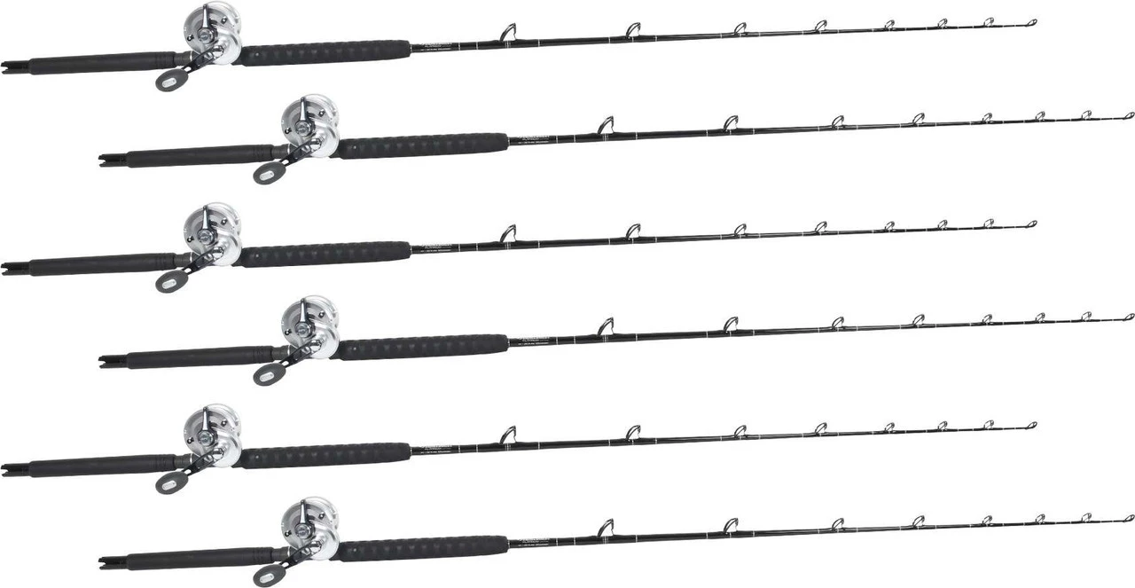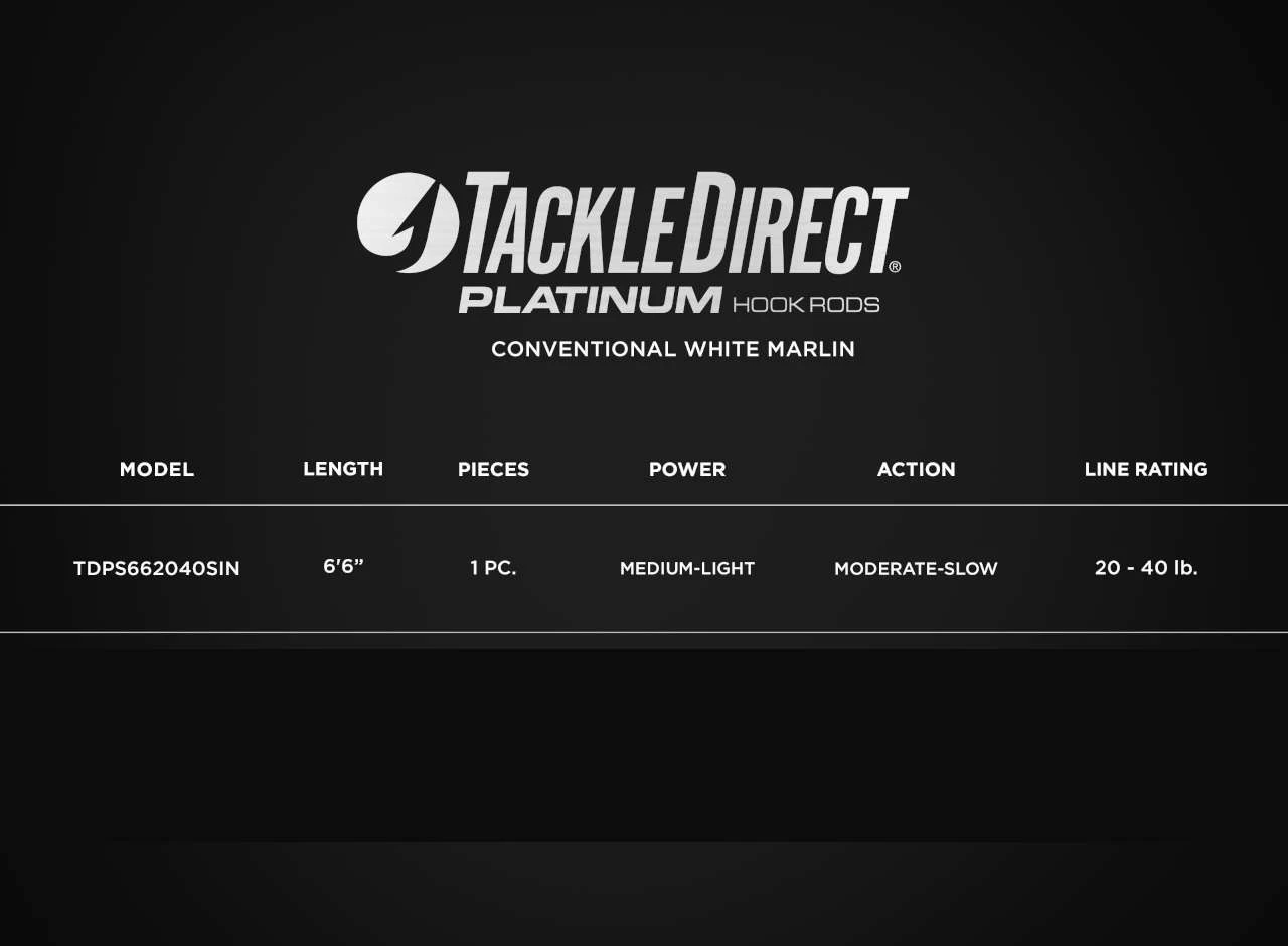 Having difficulties finding the perfect combos to outfit your new boat or to update your old gear before your next offshore white marlin trip? TackleDirect has taken all of the guess work out of matching the industry?s best white marlin reels along with the brand new series of Platinum Hook rods by TackleDirect. The TackleDirect Platinum Hook TDPS662040SIN/Shimano TAC20BFC Conventional White Marlin Package includes 6 perfectly matched rod and reel setups, and is an exceptional option when dredge fishing for white marlin and other small billfish with circle hooks. The soft tip section of the rod results in a higher percentage of solid hookups, while the lightning fast 60? per crank retrieve of the BFC ensures the angler stays tight on a white going ballistic behind the boat. Whether you are outfitting your new boat, or want to upgrade your white marlin or sailfish trolling arsenal, this package featuring the TackleDirect Platinum Hook Rods and the Shimano Talica BFC is the best choice to set you up like the pros.