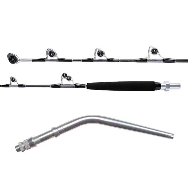 Constructed of the finest marine grade alloy aluminum, the Aftco Curved Unibutt serves as the stable platform that both reel and rod blade easily secure to. Through Aftco’s unique “swaging” process, the aluminum butt is “unitized” to the reel seat, creating a connection which maximizes strength with minimum weight. The aligning pin-plug gimbal and fixed hook are locked in permanent alignment so that the gimbal, reel, and rod guides always align up exactly. The ferrules are precision-machined for complete interchangeability with rod tip sections, and an O-ring on the ferrule prevents corrosion between the ferrule and the reel seat. A Teflon ring inside the collet nut assures snug fit, prevents galling, and allows for easy removal of the nut. Available in several different styles and colors, the Aftco Unibutts are a simple, high-quality component, ready to complete your rod and give you seasons of use if not a lifetime to come.