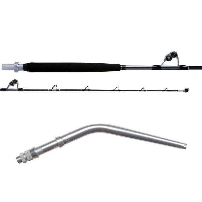 Constructed of the finest marine grade alloy aluminum, the Aftco Curved Unibutt serves as the stable platform that both reel and rod blade easily secure to. Through Aftco’s unique “swaging” process, the aluminum butt is “unitized” to the reel seat, creating a connection which maximizes strength with minimum weight. The aligning pin-plug gimbal and fixed hook are locked in permanent alignment so that the gimbal, reel, and rod guides always align up exactly. The ferrules are precision-machined for complete interchangeability with rod tip sections, and an O-ring on the ferrule prevents corrosion between the ferrule and the reel seat. A Teflon ring inside the collet nut assures snug fit, prevents galling, and allows for easy removal of the nut. Available in several different styles and colors, the Aftco Unibutts are a simple, high-quality component, ready to complete your rod and give you seasons of use if not a lifetime to come.