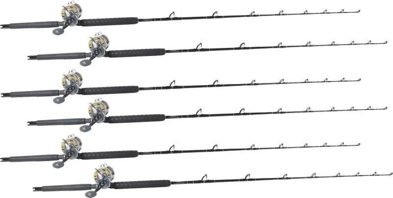 Having difficulties finding the perfect combos to outfit your new boat or to update your old gear before your next offshore white marlin trip? TackleDirect has taken all of the guess work out of matching the industry?s best white marlin reels along with the brand new series of Platinum Hook rods by TackleDirect. The TackleDirect Platinum Hook TDPS662040SIN/Shimano TYR30II Conventional White Marlin Package includes 6 perfectly matched rod and reel setups, and is an exceptional option when dredge fishing for white marlin and other small billfish with circle hooks. The soft tip section of the rod results in a higher percentage of solid hookups, and has plenty of backbone towards the foregrip of the rod in case it is ever needed. The Tyrnos 30II offers a quick retrieve at 45 inches per crank while also offering more torque in low gear if you happen to hook a yellowfin tuna or a blue marlin while looking for whitey. Whether you are outfitting your new boat, or want to upgrade your white marlin or sailfish trolling arsenal, this package featuring the TackleDirect Platinum Hook Rods and the Shimano Tyrnos is the best choice to get set up like the pros.